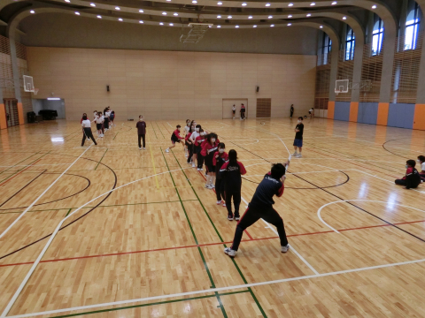 7月1日(木)体育館で白丘の乱(体育的行事)の練習を行いました。大繩とリレーのバトンパス練習の様子です。