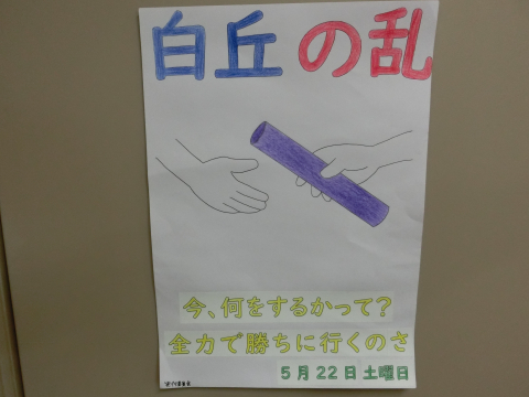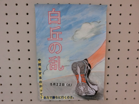 7月16日(金)に白丘の乱(体育的行事)を予定しています。もともと5月22日に予定されていましたが、緊急事態宣言を受けて2度延期になりました。生徒が描いたイメージポスターをご覧ください。