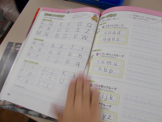 国際科。アルファベットや英単語を書くライティングの学習。