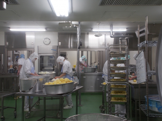 21日(月)は中華丼、水菜のスープ、ケチャップポテトです。