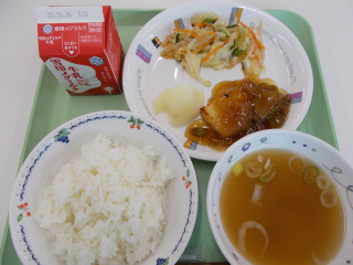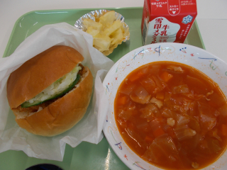 昨日は和食、今日は洋食でした。食べながら、「明日の給食は何かなあ」という子もいます。食欲の秋ですものね。