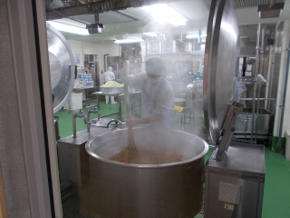 かぼちゃを切り、だしをとっています。