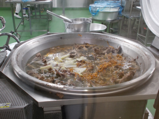 イタリアの家庭の味、ミネストローネスープの豆をゆで、肉をいため・・