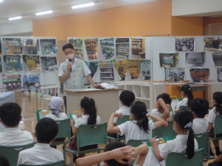 3年生が戦争について知るために、学校図書支援員の方に、戦争を扱った作品の読み聞かせとブックトークをしていただきました。