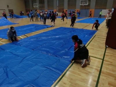 7月2日は土曜授業でした。中学校では、避難所設営等防災訓練を行いました。