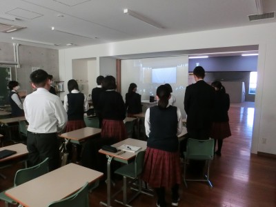 6年生と9年生はホールで、他の学年は各教室のリモートで行われました。