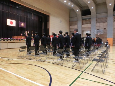 退場では、在校生からの「旅立ちの日に」の歌声をBGMに、涙を見せる生徒もいる中、体育館をあとにしました。