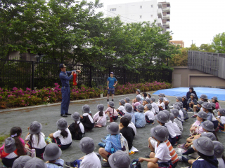 けやき広場に消防車と救急車がそれぞれ1台ずつ、消防士と救急隊員の方々が来てくれました。