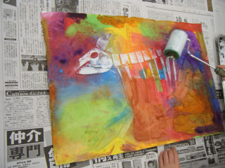 5年生による5月の図工は、アボリジニアートに挑戦です。